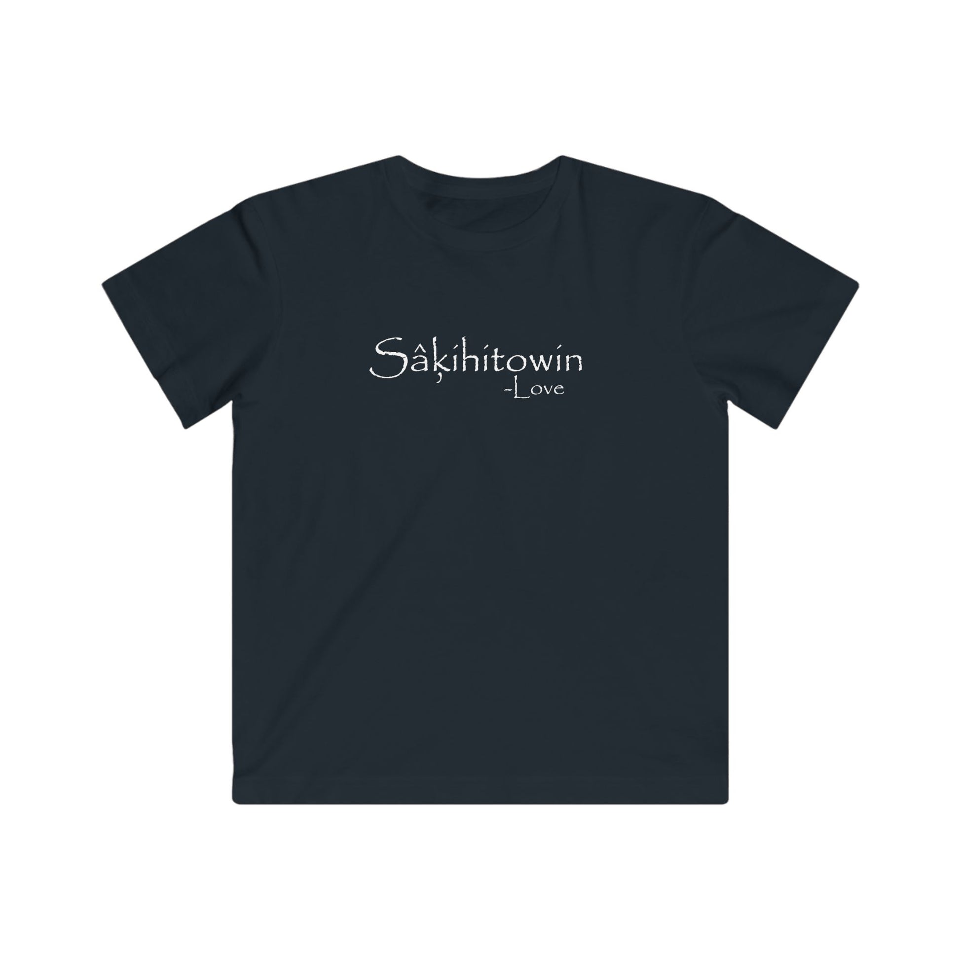 This youth jersey tee from our Sâkihitowin Collection carries the Cree word for love - a reminder of the compassion, strength, and connection that surrounds us each day. More than a design, sâkihitowin is a teaching: love for ourselves, our families, our communities, and the land.